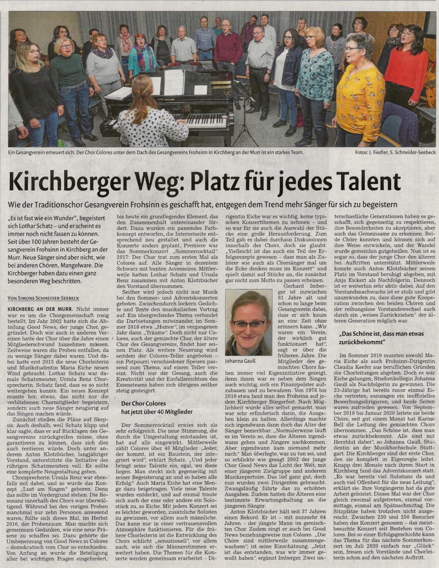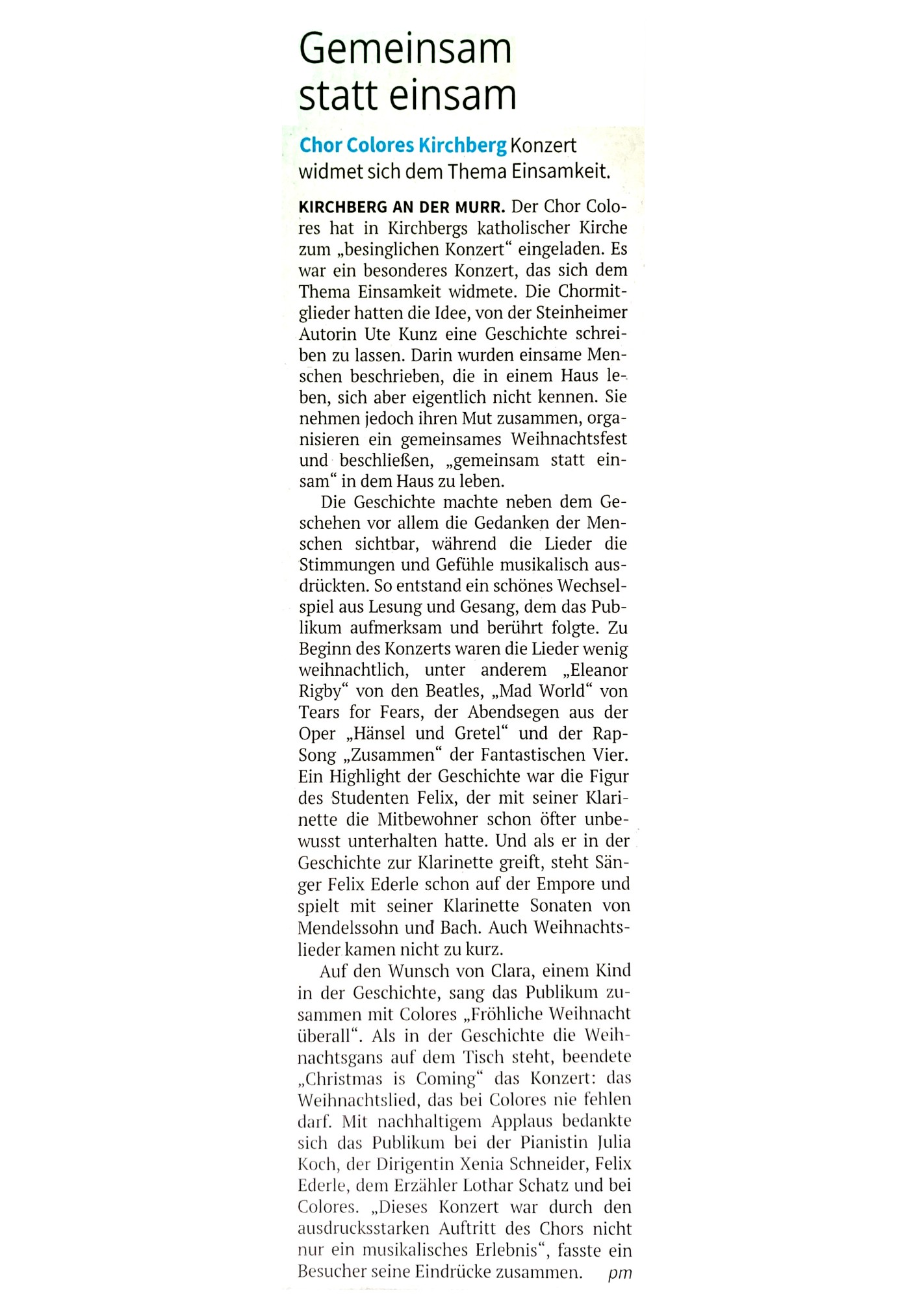 Besingliches Konzert 2019 Marbacher Zeitung vom 4.12.2019:
