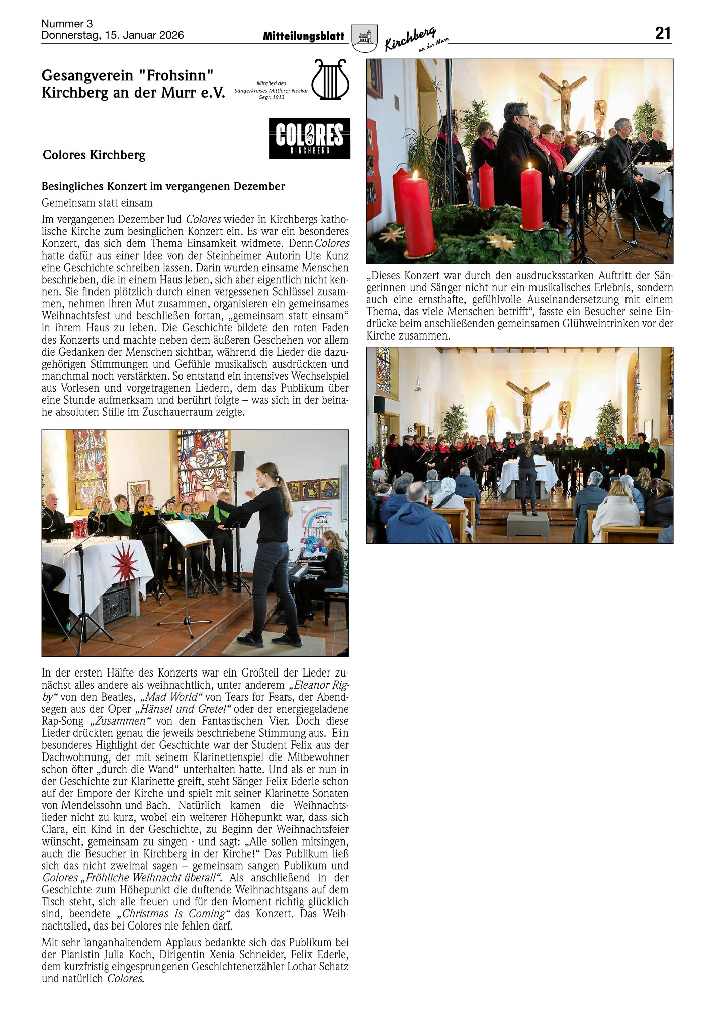 Besingliches Konzert 2025 Mitteilungsblatt Kirchberg 15.1.2026